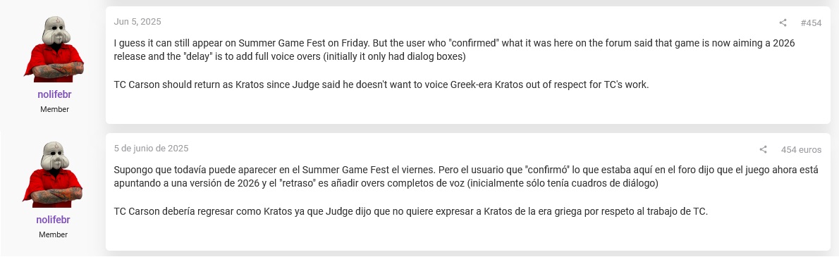 Algo había escuchado hace tiempo de que este juego no lo estaba haciendo Santa Monica porque Cory Balrog esta desarrollando desde hace años una nueva IP que es de Sci-Fi, ya han pasado varios años y se esta haciendo esperar demasiado este juego junto al Wolverine de PS5, se habla o se rumorea de un showcase en Septiembre pero a veces pienso que ese formato dejo de existir y ahora solo van hacer state of playLito El Pelirrojo escribió: ↑Mié Jun 04, 2025 7:42 am
